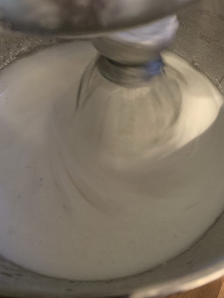 - Eiweiß zu Eischnee schlagen. Zucker, Vanillezucker und Limettensaft ungefähr nach der halben Zeit hinzugeben.