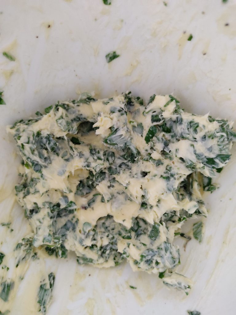 • Kräuter mit der weichen Butter gut vermischen und etwas durchziehen lassen.