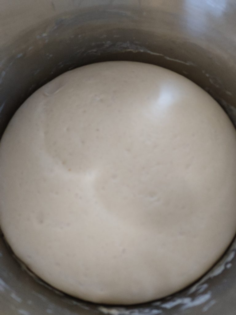 Teig abdecken und 2-3 Stunden im Raum gehen lassen (=zur Gare stellen). Der Teig sollte sich danach gut verdoppelt haben. Je nach Temperatur kann die Gehzeit auch kürzer oder länger dauern. Einfach beobachten.